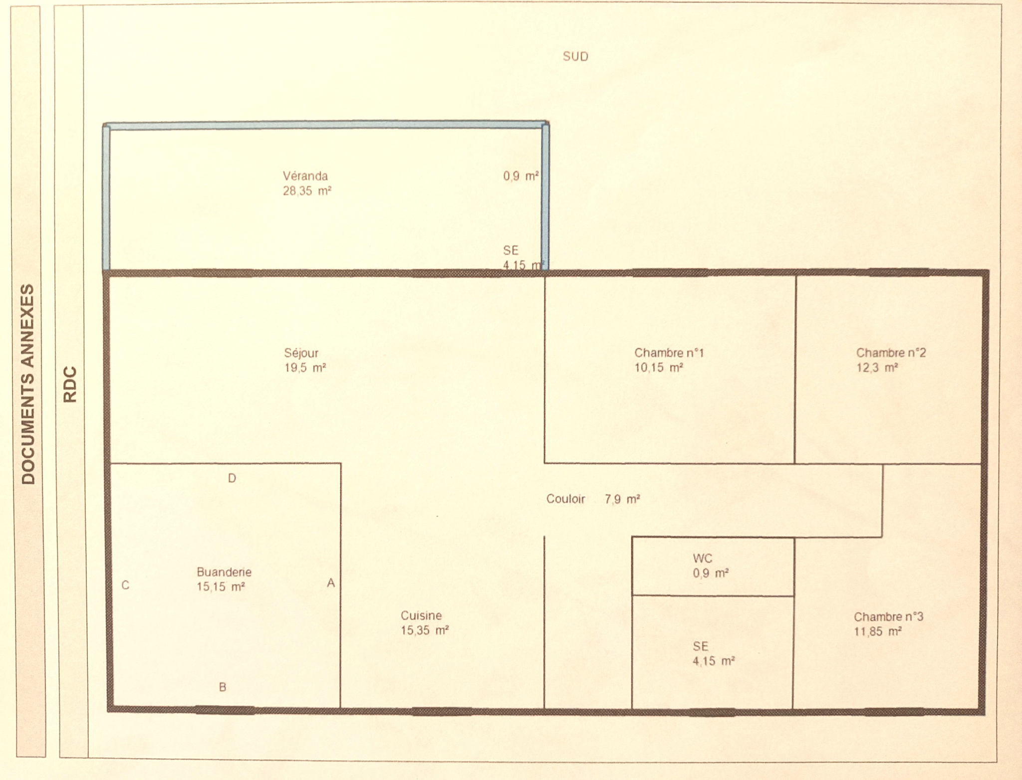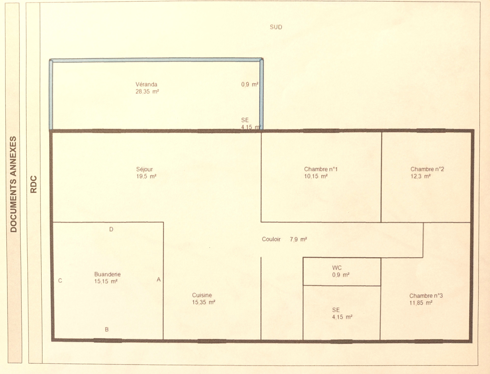 Descriptif : Secteur Laure-Minervois ( 11800 ), Maison plain-pied T4/5 d'environ 125,60 m2 dont 82 m2 habitables composée : entrée, séjour / cuisine équipée ouvrant sur une véranda ( 28 m2 ), 3 chambres / placards, salle d'eau, wc séparés, buanderie ( 15,15m 2 ). Poêle à granulés, clim réversible, double vitrage, volet manuel. Bon état général.Le tout sur un parcelle clôturée et arborée d'environ 2110 m2 ( potager / mare / poulailler ). Présence de panneaux photovoltaïques. Assainissement individuel ( Fosse septique vidangée ). Taxe foncière 826 € dont 165 € d'ordures ménagères.