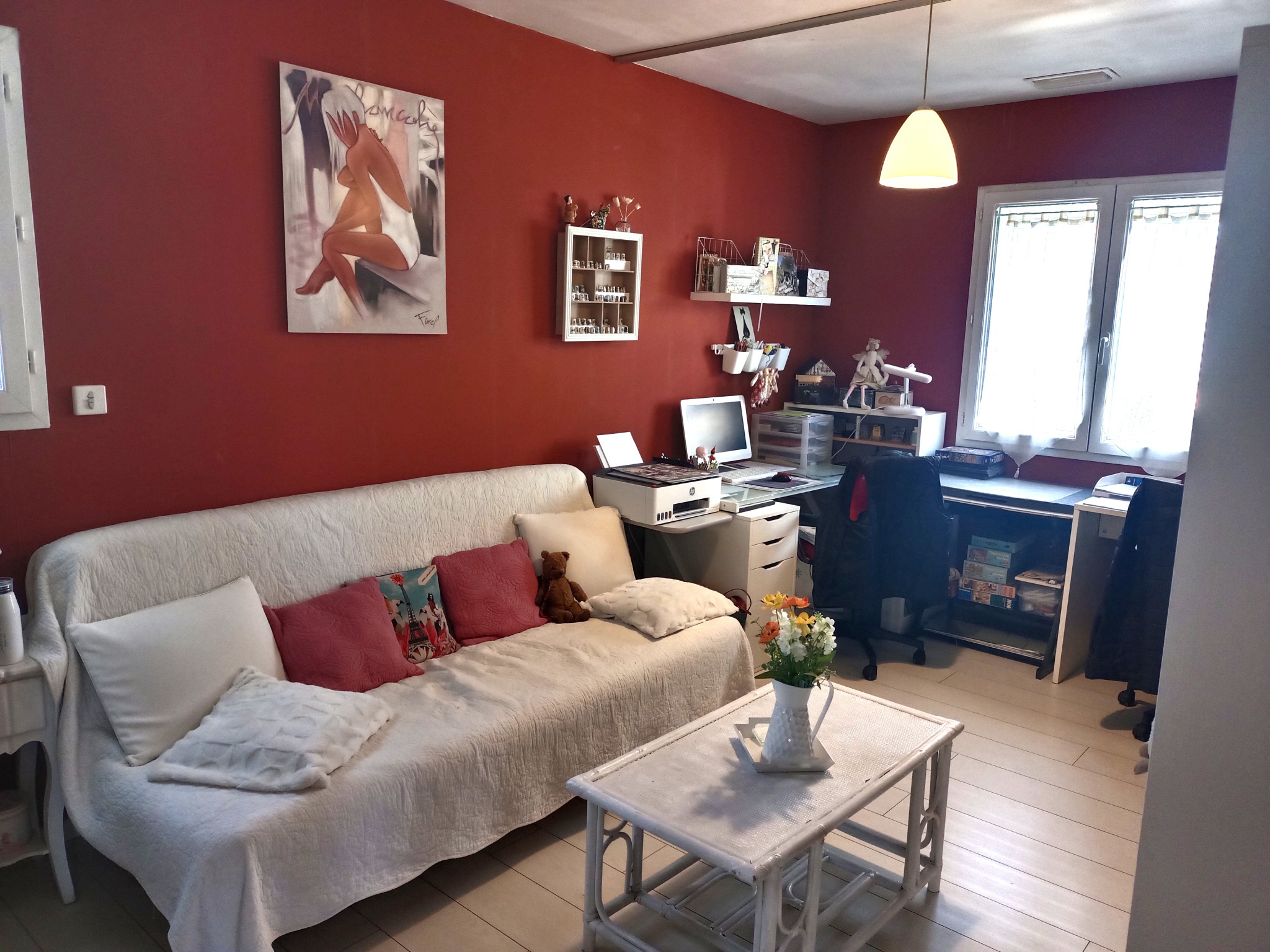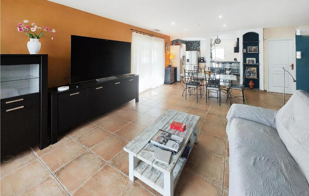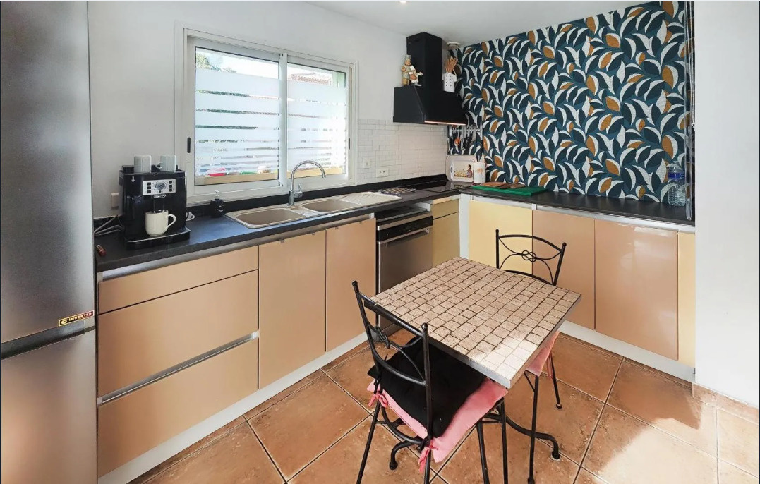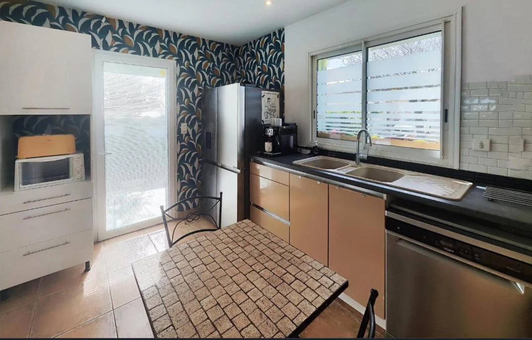 Située dans un quartier résidentiel, maison plain-pied T4 ( année 2005) d'environ 82 m² habitables + un studio indépendant d’environ 18 m2. La maison principale se compose : entrée, séjour / cheminée ouvrant sur une terrasse, cuisine américaine / équipée, 2 chambres, salle d'eau, wc, nombreux placards. clim réversible gainable + radiateur électrique, double vitrage, volets roulants, garage. Le tout sur parcelle clôturée d'environ 650 m² avec piscine 8X4 et forage. Présence de panneaux photovoltaïques. Bon état état général. Proximités tous commerces et écoles