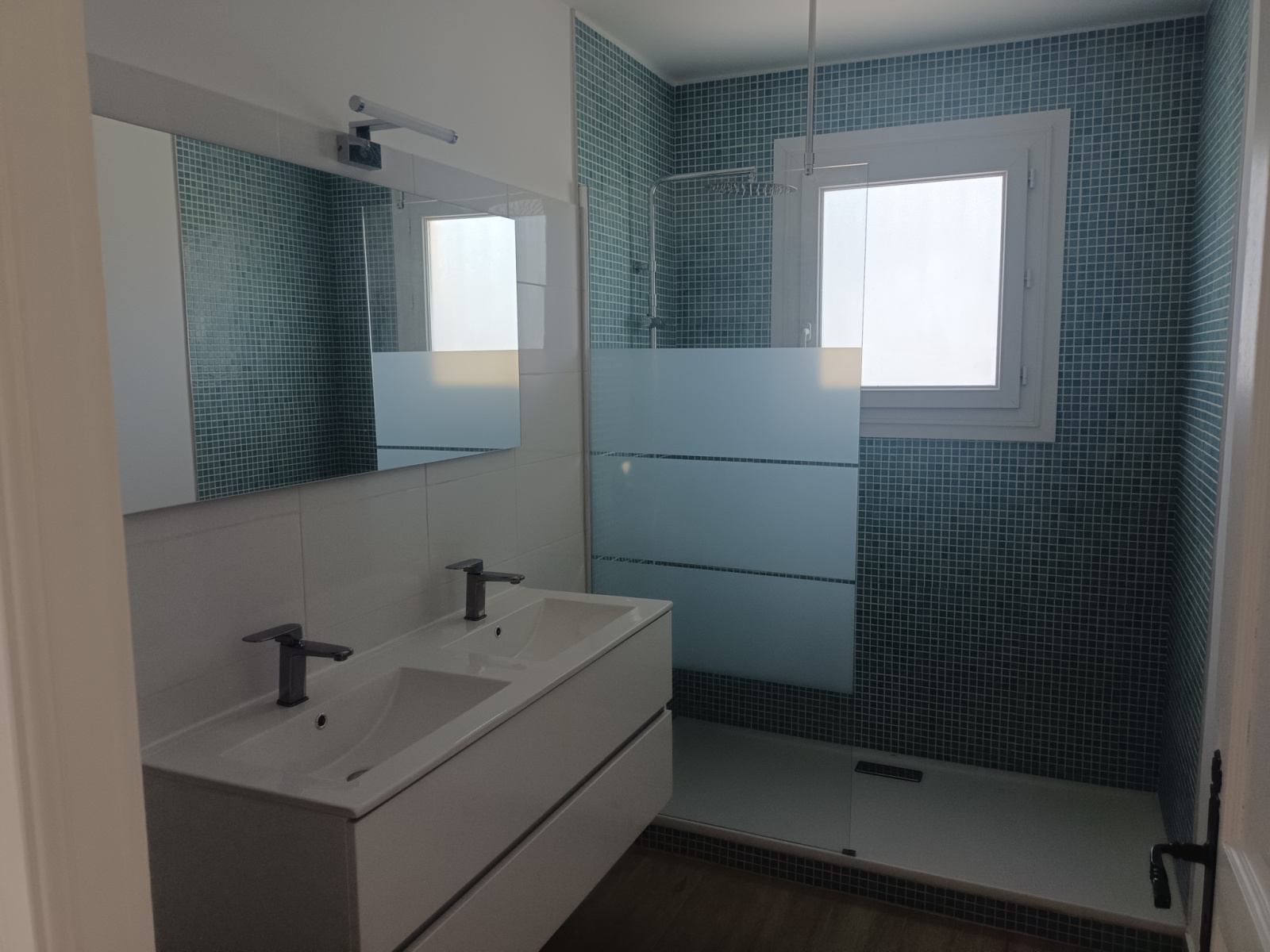 Descriptif : Centre-ville Sauvian ( 34410 ) : Villa traditionnelle T5/6 ( mitoyenne) loi carrez 119.87 m2 habitables composée au RDC : entrée, cuisine séparée / équipée, séjour ouvrant sur un jardin avec terrasse couverte, salle à manger ( 4 ème chambre possible ), wc séparés. A l'étage R+1 : salle d'eau, wc séparés, 3 chambres / placards dont une avec espace bureau et terrasse privative. Le touts sur une parcelle clôturée d'environ 409 m2 avec piscine hors sol et puits. 2 garages indépendants, chauffage électrique. Travaux réalisés : électricité, plomberie, sol, peinture, salle d'eau, cumulus, cuisine.